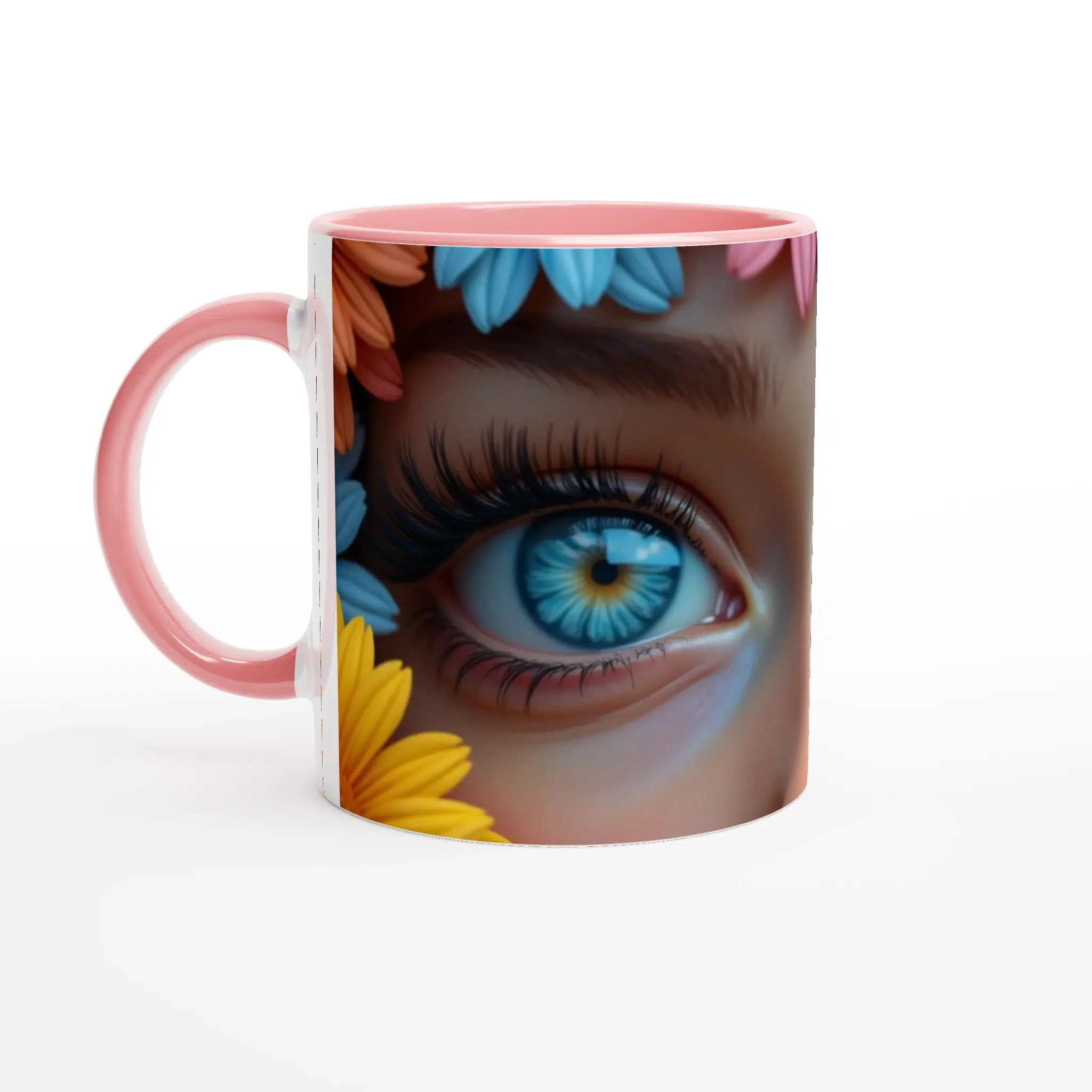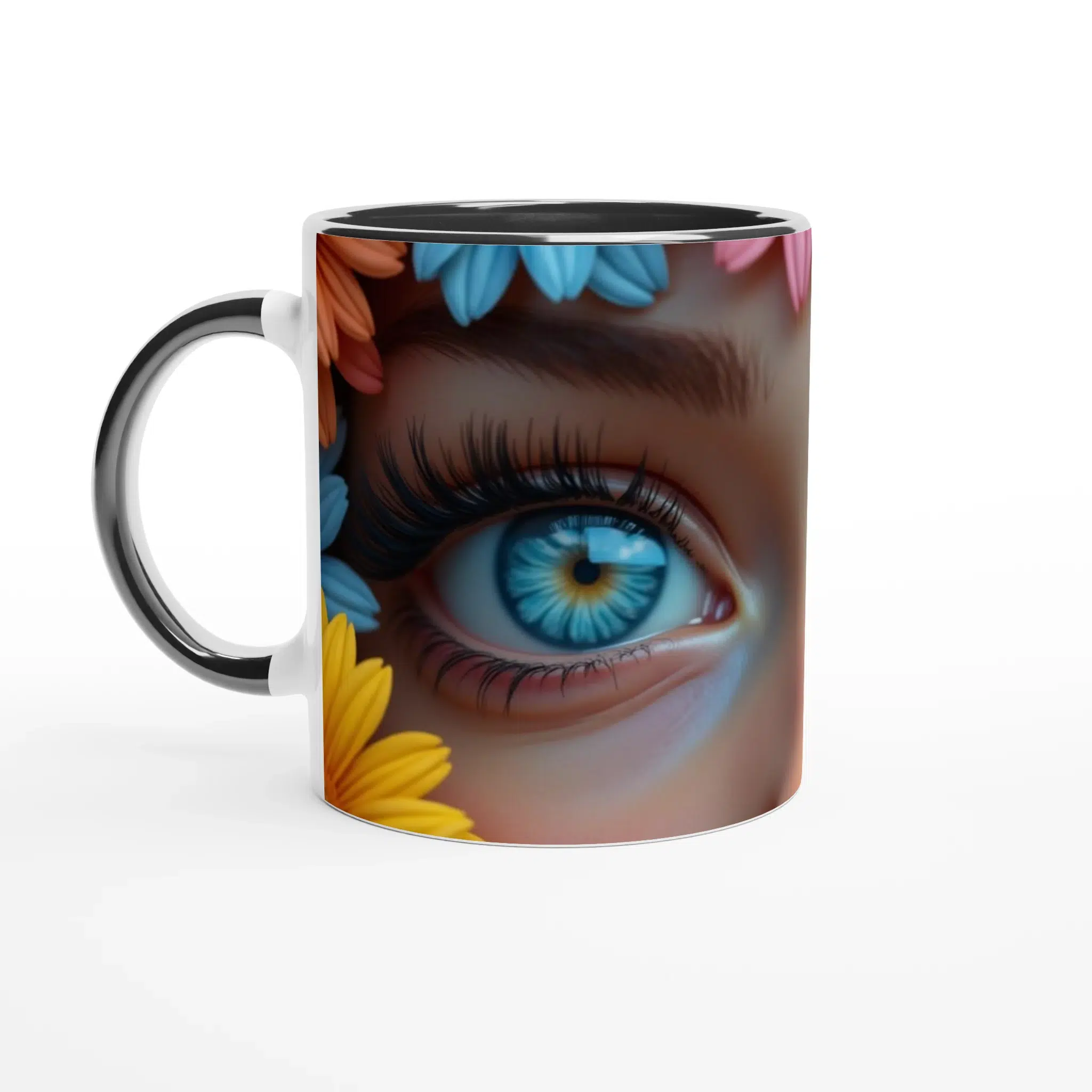 Enchanting AI Fantasy Mug - Vibrant Floral Eyes Design