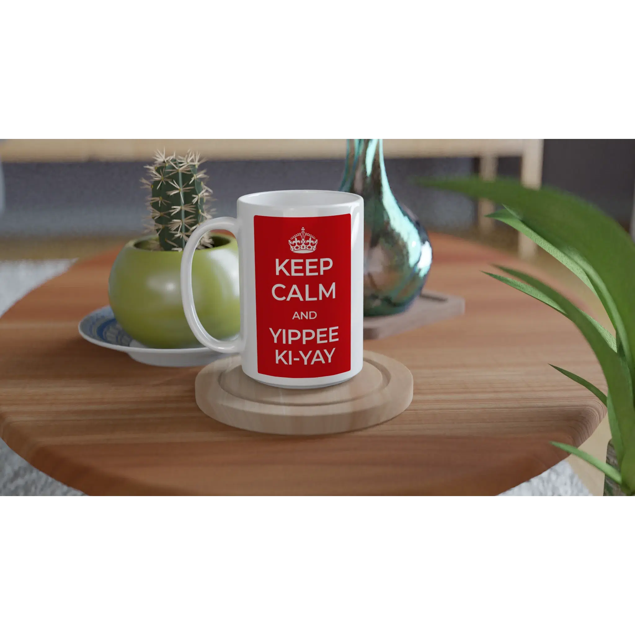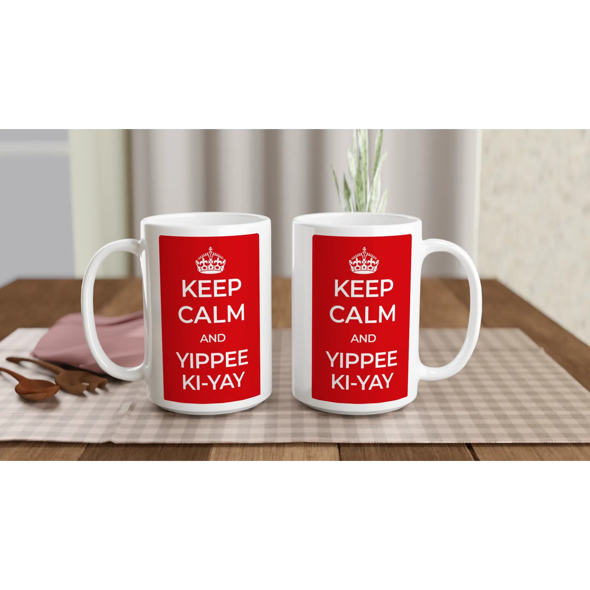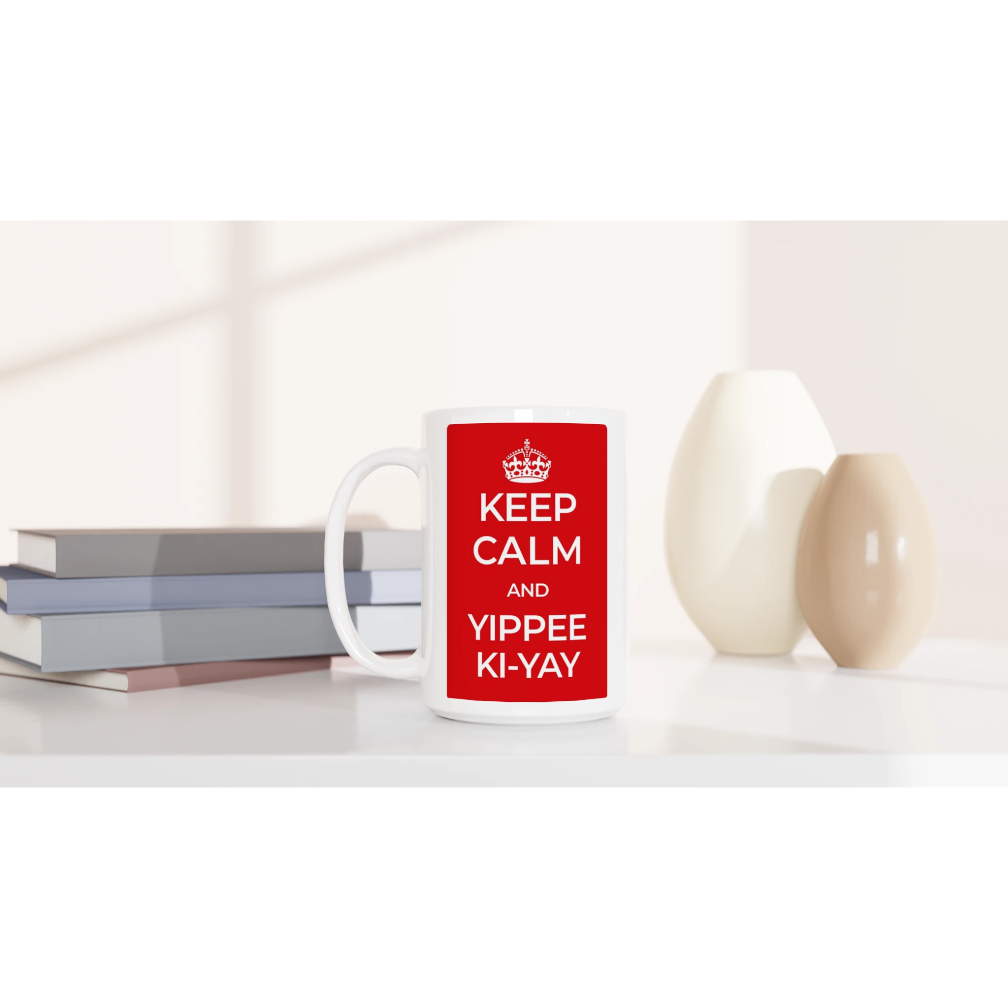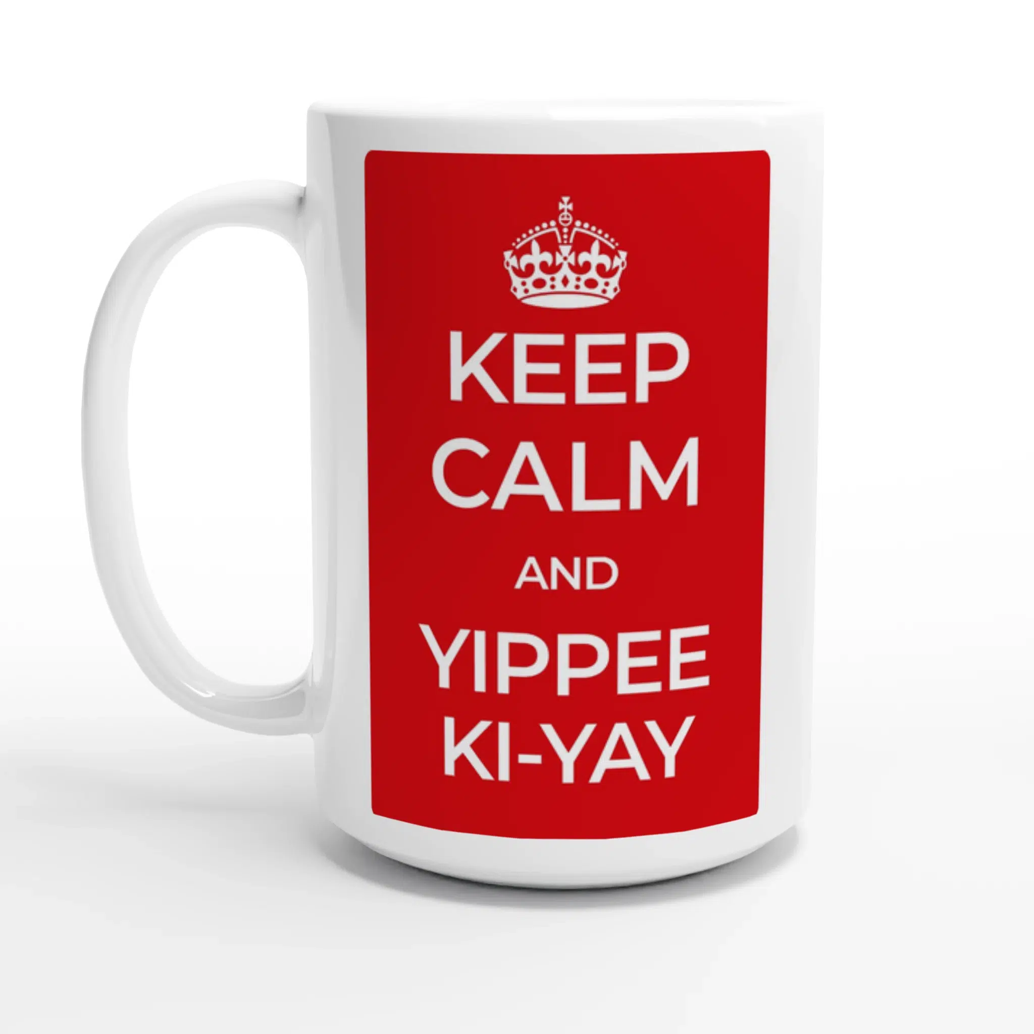 Are you ready to make a statement with every sip? Introducing our ‘Keep Calm and Yippee Ki-Yay’ 15oz ceramic mug, a cheeky yet bold reminder of resilience and spirit. Reminiscent of the iconic wartime poster, this mug is not just for your morning coffee but for any moment that needs a touch of motivation – be it tea, hot chocolate, or your favorite soup.