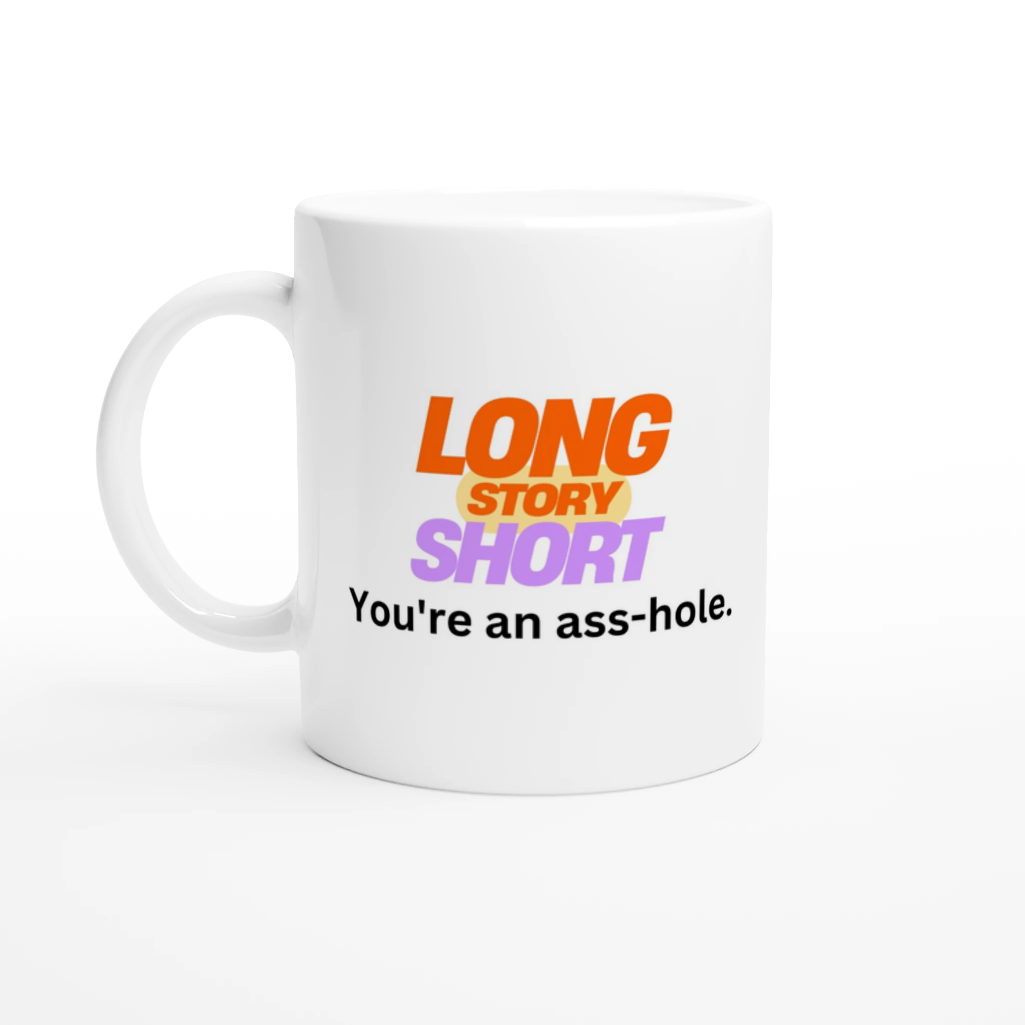 This short “long story” ceramic mug is perfect for any event of the day. Your morning coffee, a hot chocolate, or any other hot beverage you enjoy. The mug is glossy white and the prints come out beautifully and vividly on it. The print retains its quality and luster when used in both microwaves and the dishwasher.
